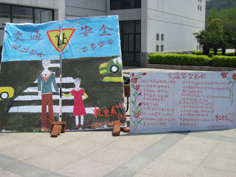 有关交通安全的展板吸引了广大同学前来观看学习,“人人遵守交通安全的主题班会”使得同学们集中学习了交通安全知识,提高了交通安全意识。同学们积极参加由交警大队的有关领导到我校进行了安全教育讲座,我们身边发生的许多触目惊心的交通安全事故,给同学们敲响了警钟。