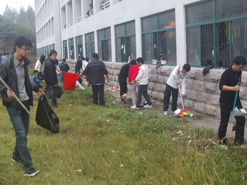 为了把同学们保护环境,热爱劳动,讲究卫生的意识调动起来。机电系团总支学生会于2010年10月12日下午在学生公寓楼下组织了“清洁校园”的义务劳动。从中看到了同学们端正的态度,饱满的热情,不怕苦,不怕脏,不怕累的精神。