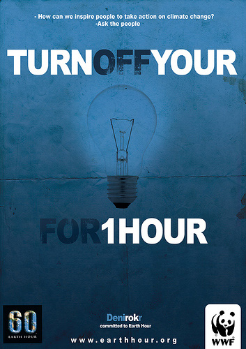 "地球一小时"是WWF(世界自然基金会)应对全球气候变化所提出的一项倡议,希望个人、社区、企业和政府在每年3月最后一个星期六20:30-21:30熄灯一小时,来表明他们对应对气候变化行动的支持。