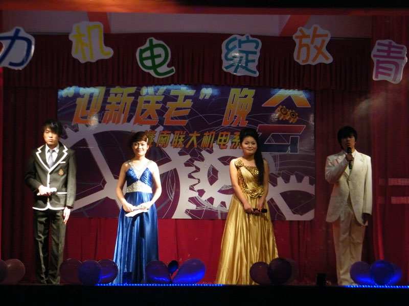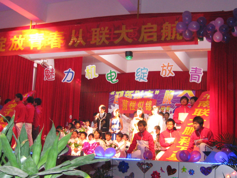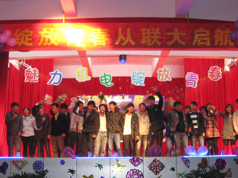 在这临近十二月份的季节里,天气的寒冷却盖不住我们内心的那份深深的离愁,也许为了尽快从那份离愁中走出来,2010年11月26日下午由机电系主办的“魅力机电,绽放青春”迎新送老文艺晚会在食堂三楼盛大举行。