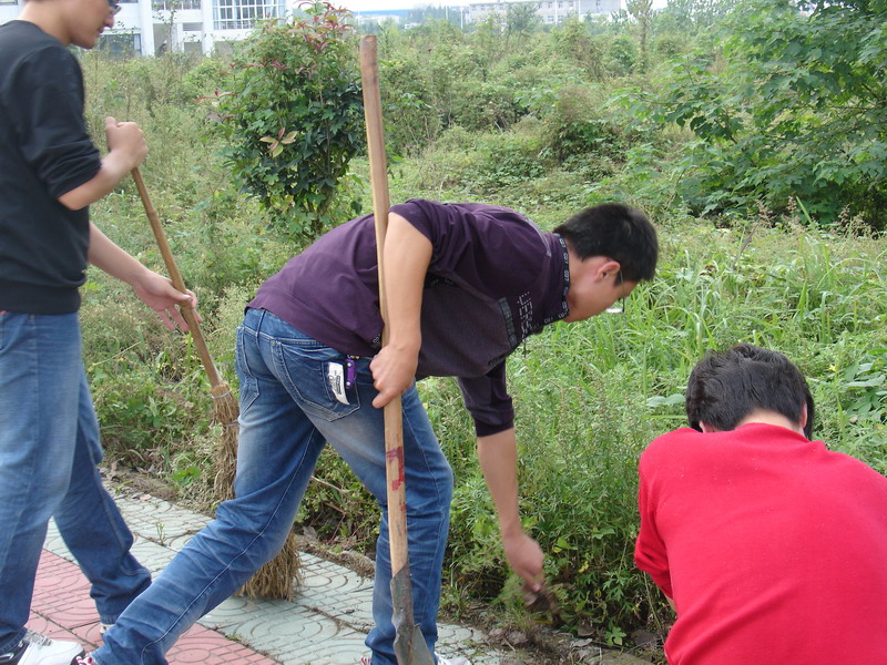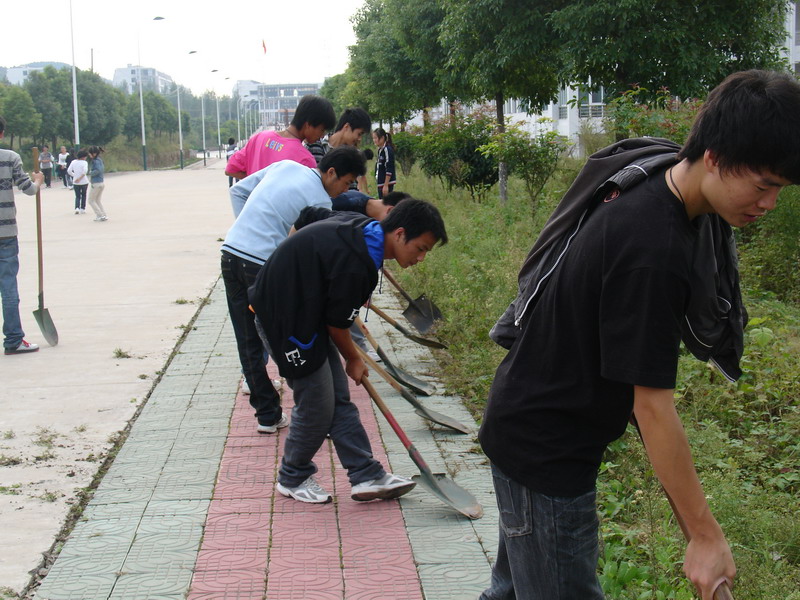 为了加强同学们的劳动意识,在我系领导的带领下,9月28日10级新生展开了热火朝天的义务劳动。这次劳动充分发扬了我系同学不怕苦,不怕累,学校卫生从我做起的精神。