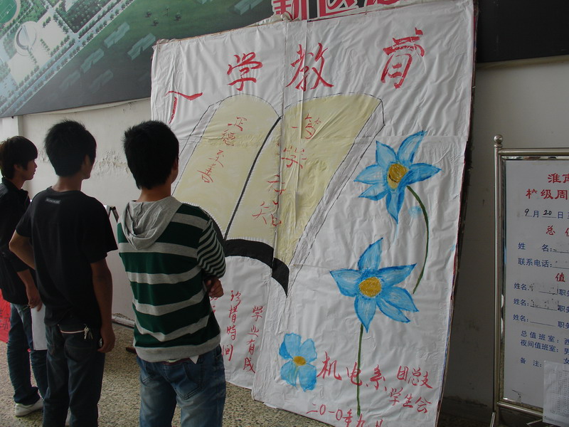 本系为将“入学教育”活动的影响力能在全校起到带头作用,在学校展示“入学教育”为主题的展板,丰富我校更多的同学从中受益。