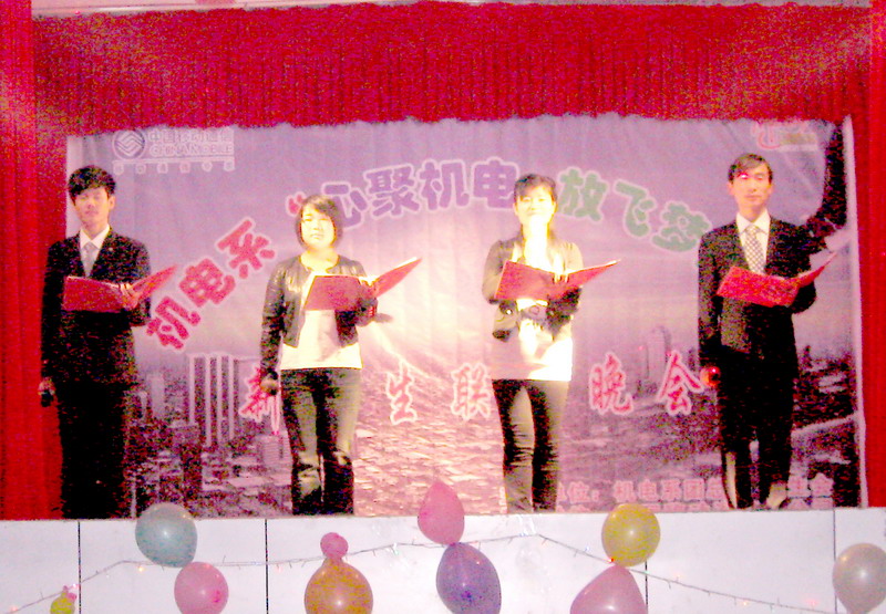 2011年11月19日星期日下午4:40,在学校天翼舞台,机电系举办的“心聚机电,放飞梦想”新老生联欢晚会拉开了帷幕。