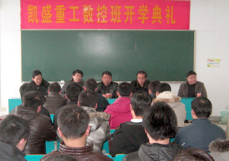 3月5日上午,凯盛重工数控班在我校东教学楼举行了开学典礼。机电系负责同志,凯盛重工人力资源部长,精加工车间负责人出席了典礼。