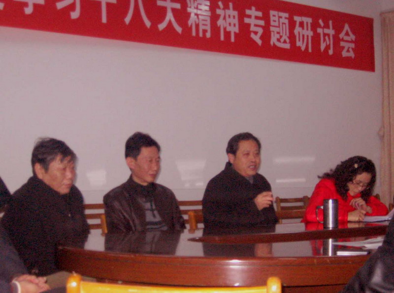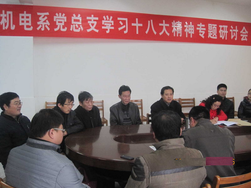 11月23日下午,机电系党总支在实验楼三楼会议室召开“学习十八大精神”研讨会,机电系全体党员参加会议,校长赵耀军同志出席会议。