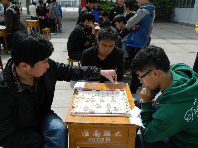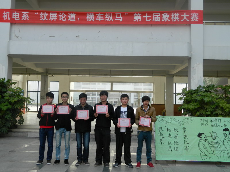 为了丰富同学们的校园文化生活,2013年4月21日下午2点半,机电系在东教学楼天井隆重举办了 “纹屏论道,横车纵马”第七届象棋大赛。