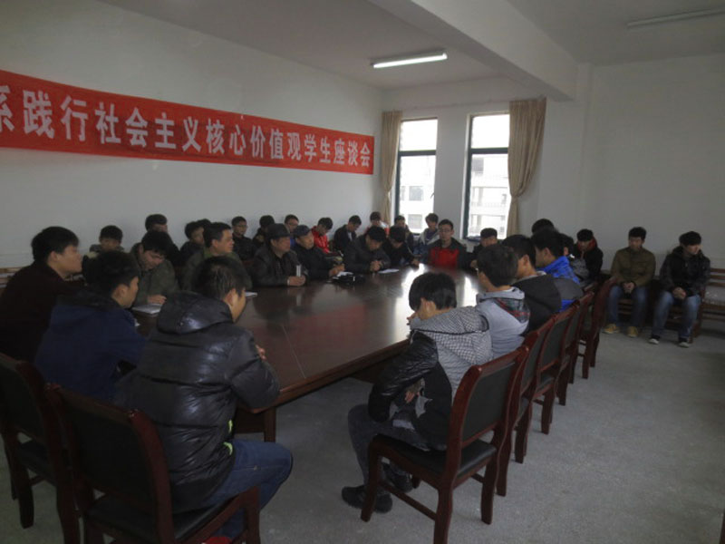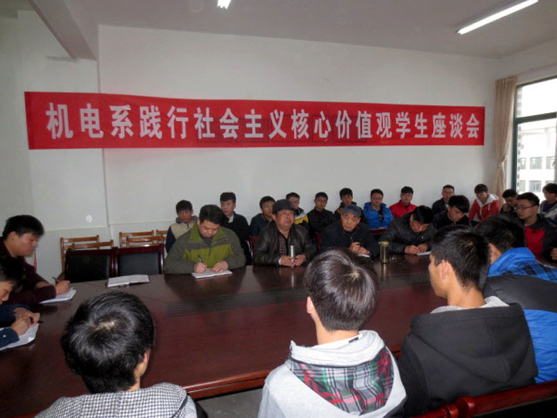 为进一步在广大学生中推进学习和践行社会主义核心价值观活动,机电系于12月18日下午在实训楼三楼会议室举行了践行社会主义核心价值观学生座谈会。校关工委老师、学生代表参加了此次会议,会议由系党总支书记主持。