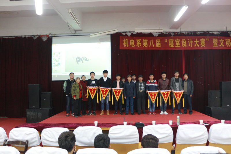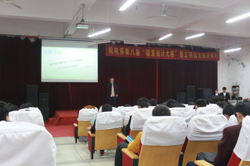 2016年11月17日下午,机电系第八届寝室设计大赛暨宿舍文明、安全、和谐活动月表彰大会在西220报告厅举行,校关工委老师、系领导、班主任、辅导员以及全系各宿舍学生代表、各班班干参加了大会。